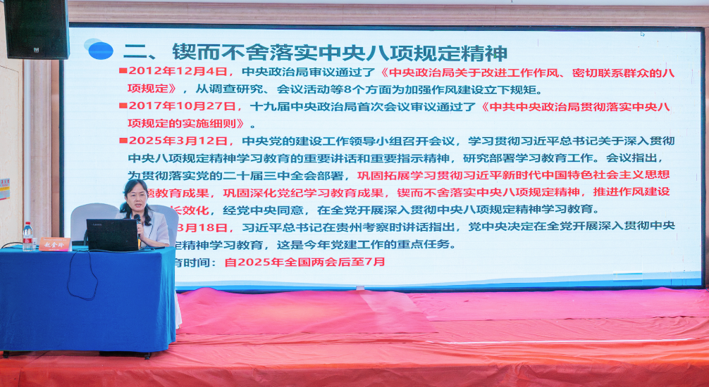 6月21日上午,市委教育工委书记,市教育局党组书记、局长赵金玲以“锲而不舍落实中央八项规定精神,以优良作风争做教育强市奋斗者”为主题作讲座。