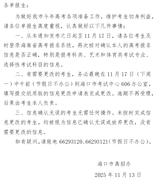 关于确认2026年高考报考科类、艺术体育类考试专业、选择性考试科目等信息的通知