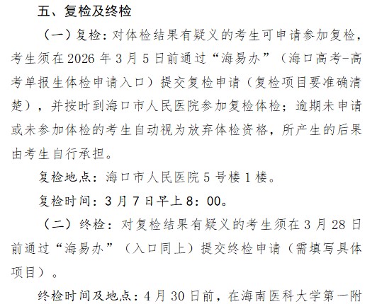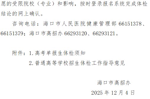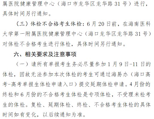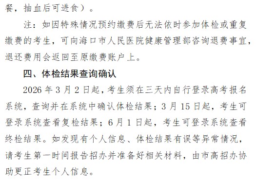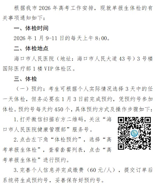 2026年海口市高考单报生体检工作通知