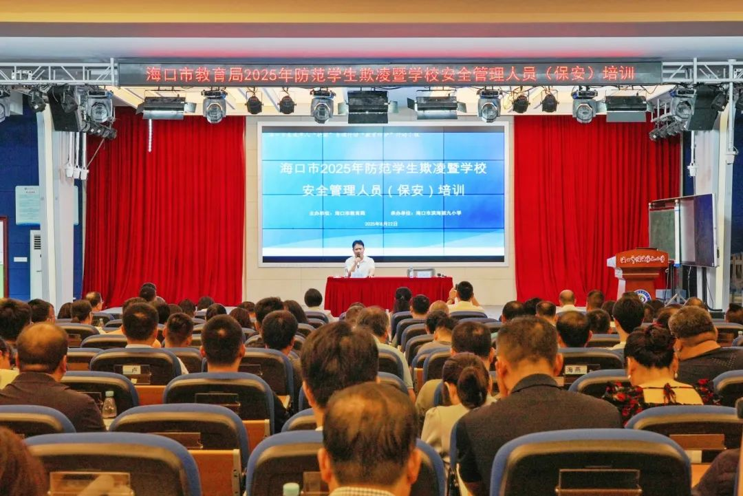 8月22日上午,为进一步提升我市教育系统应急安全管理队伍的综合素质和履职能力,筑牢校园安全防线,切实防范学生欺凌事件发生,2025年海口市防范学生欺凌暨学校安全管理人员(保安)专题培训在海口市滨海第九小学开班。市教育局党组成员、副局长李雄伟出席开班仪式并讲话,各区教育局和市直属学校(幼儿园)分管领导和具体工作负责人及各校保安骨干力量共280余人参加。