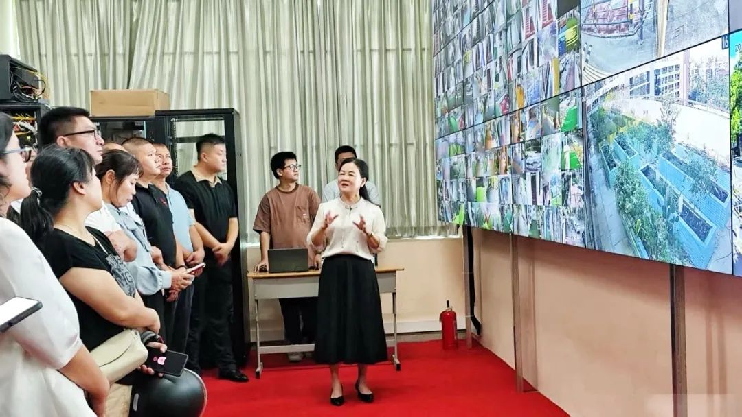会前,与会者集中参观了滨海九小校园安防监控一体化一期工程。