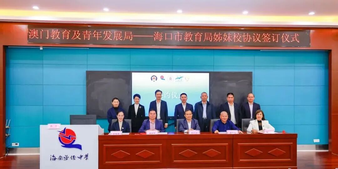 近日,澳门教育及青年发展局与海口市教育局姊妹校协议签订仪式在海南华侨中学举行。澳门镜平学校与我市的海南华侨中学、北京师范大学海口附属学校、市海燕小学、市教育幼儿园正式结为姊妹学校。双方将在课程共建、师生交流、教研协作等方面开展互动,推动两地教育质量提升。