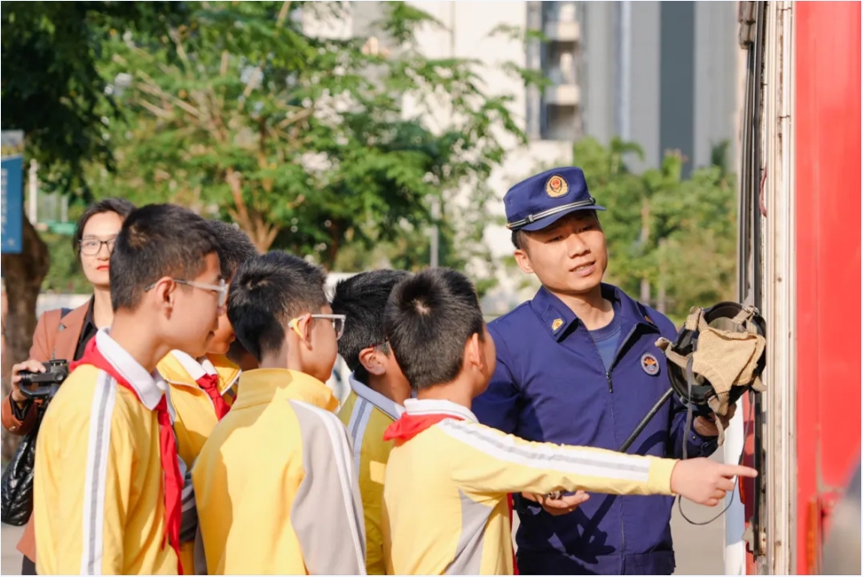 24日上午,活动在应急疏散演练中拉开帷幕,各班学生在老师的指挥下,迅速捂住口鼻,沿预定路线有序撤离,展现出良好的应急素养。通过演练,不仅巩固了全体师生们的消防安全意识,更全面检验了学校应急能力。期间,消防人员还组织师生现场体验各类消防装备器材,深入了解火场正确逃生、日常预防火灾等消防知识,进一步筑牢校园安全防火墙。