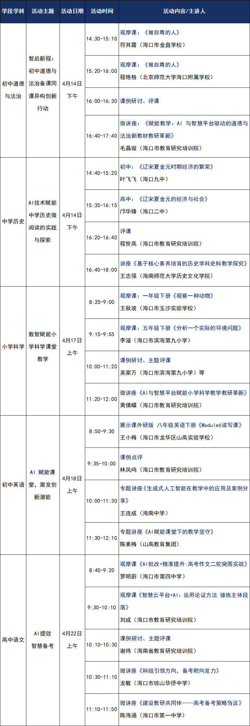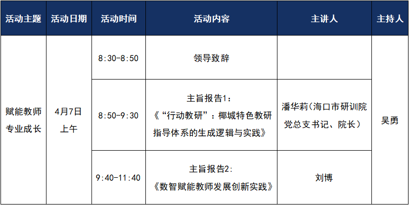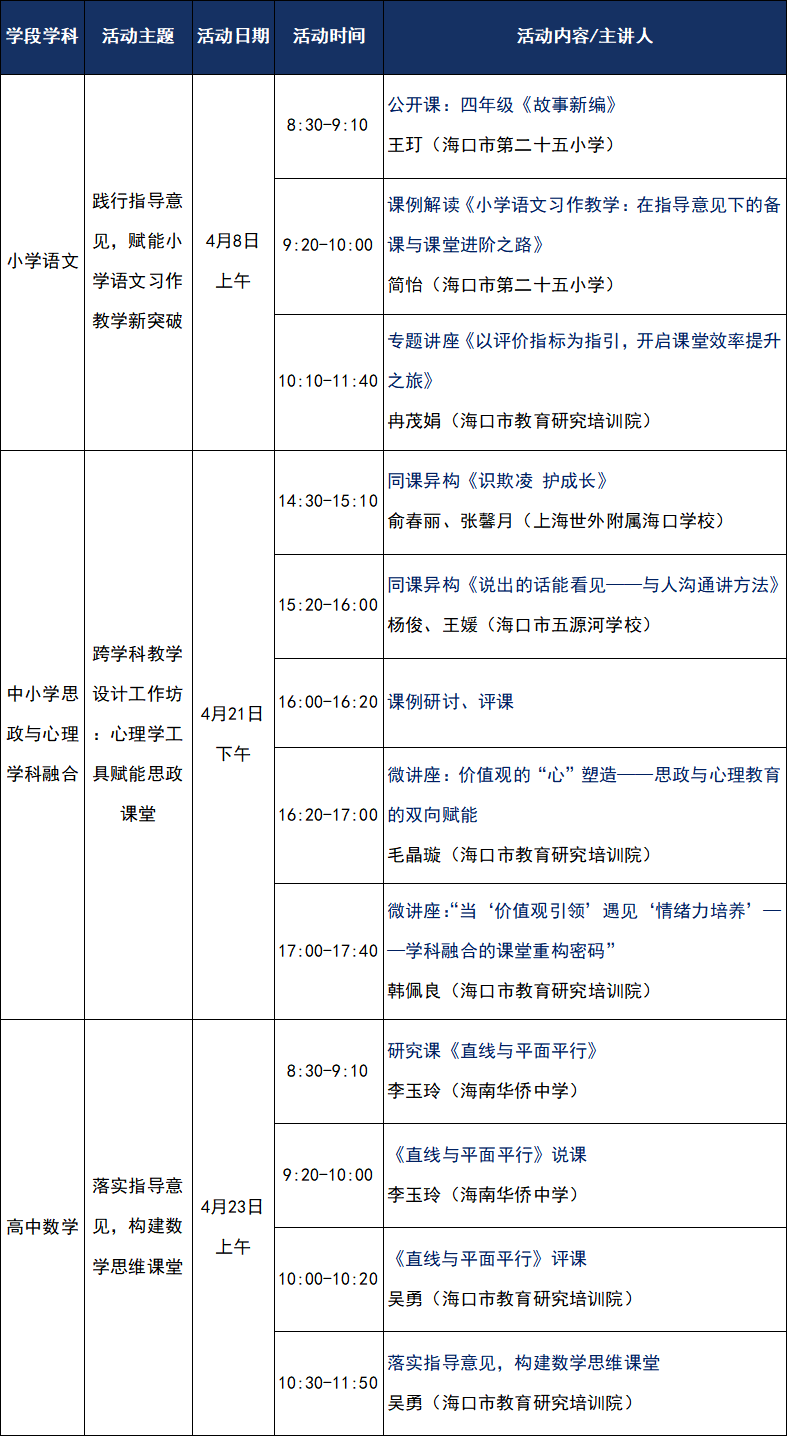 为贯彻落实《教育强国建设规划纲要(2024-2035年)》《基础教育课程教学改革深化行动方案》等文件精神,积极探索区域教研赋能教师专业成长、促进教师教育教学能力的提升,进一步落实《海口市中小学课堂教学指导意见(2024年)》,海口市教育研究培训院将于明日(4月7日)正式启动海口市第二届“椰城教研月”系列教研活动。