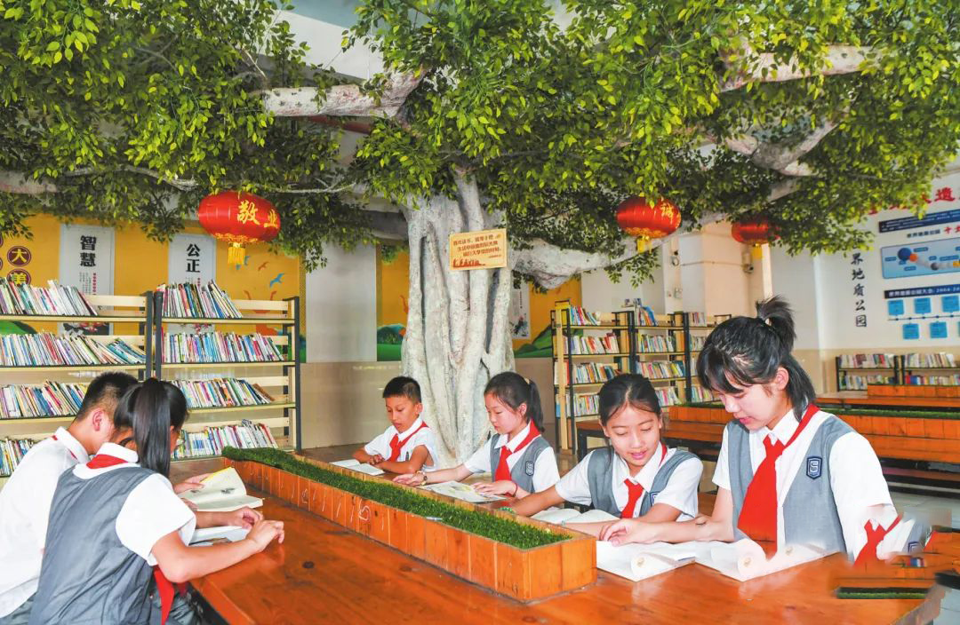 海口市五源河学校的大树书屋为学生提供了良好的阅读环境。海口市融媒体中心记者康登淋 摄